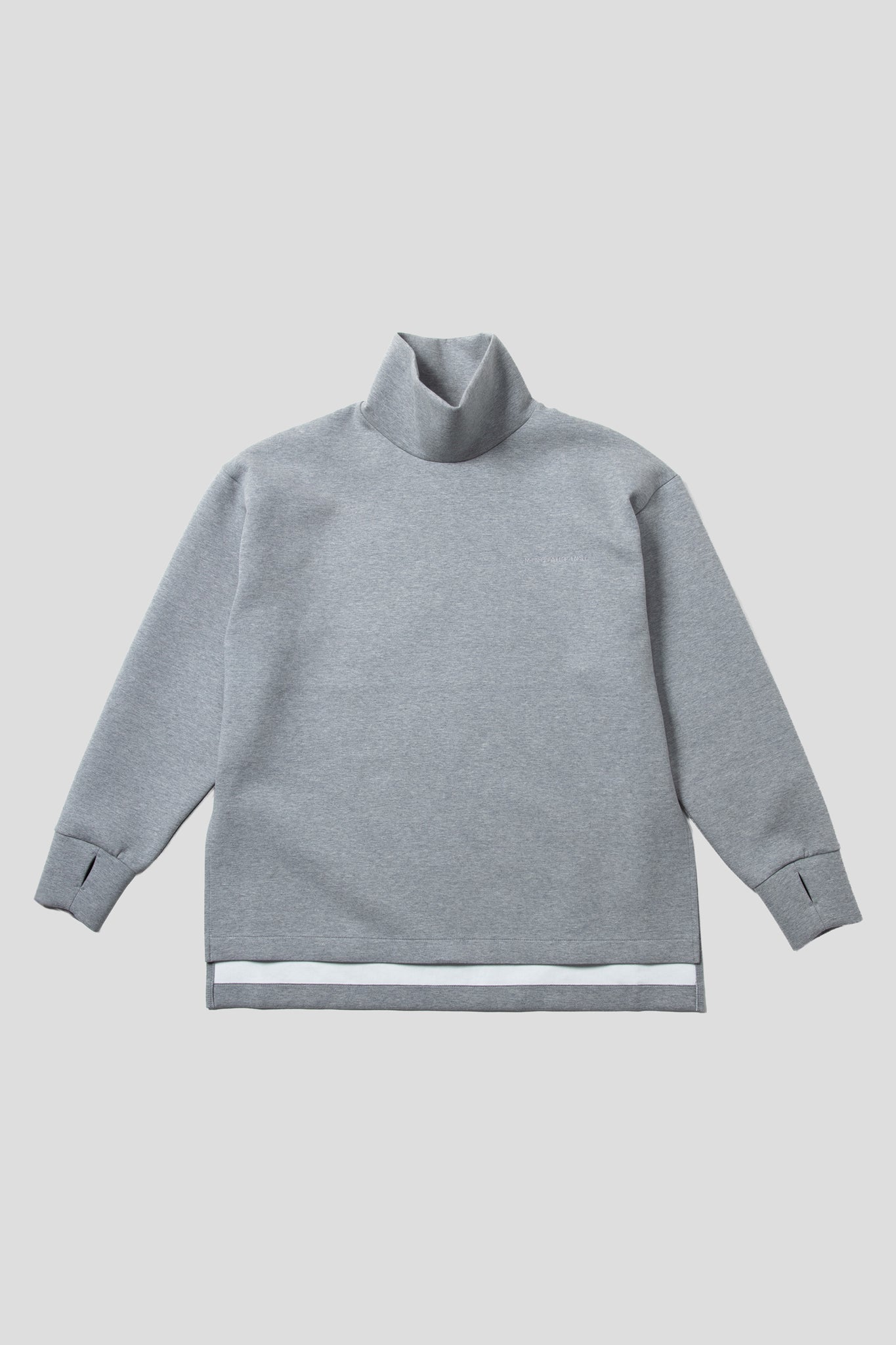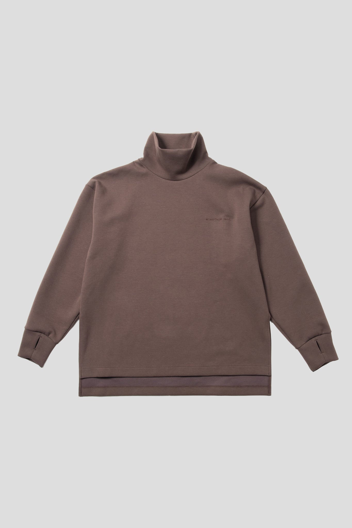 袖口がサムホール仕様の弾力性の高いダンボールニットハイネック。