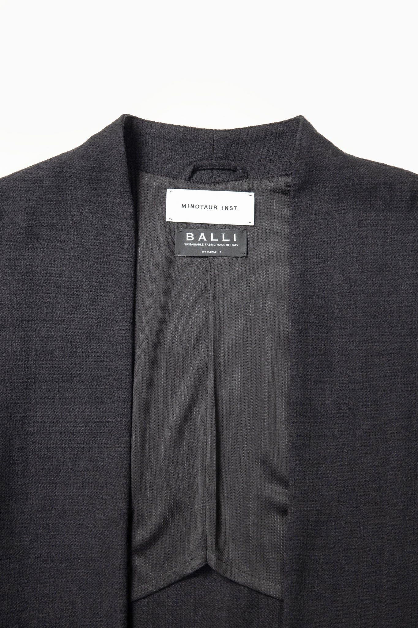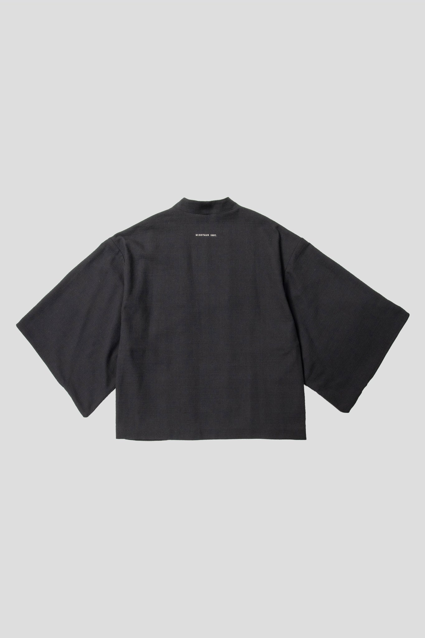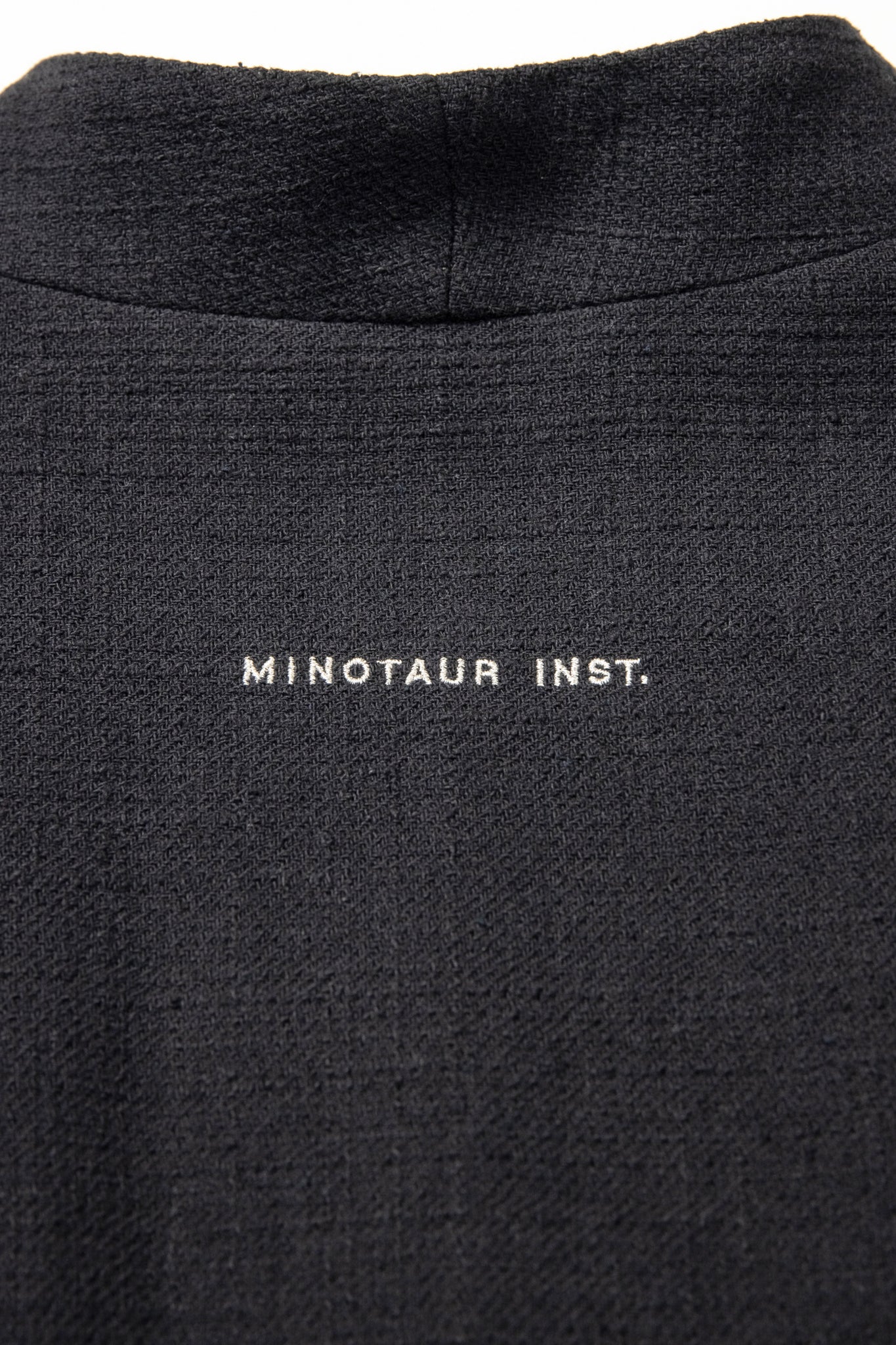 フロントは留め具のないミニマルな仕様とし、背面にはシルバーで施した MINOTAUR INST. 刺繍ロゴをさりげなく配置。