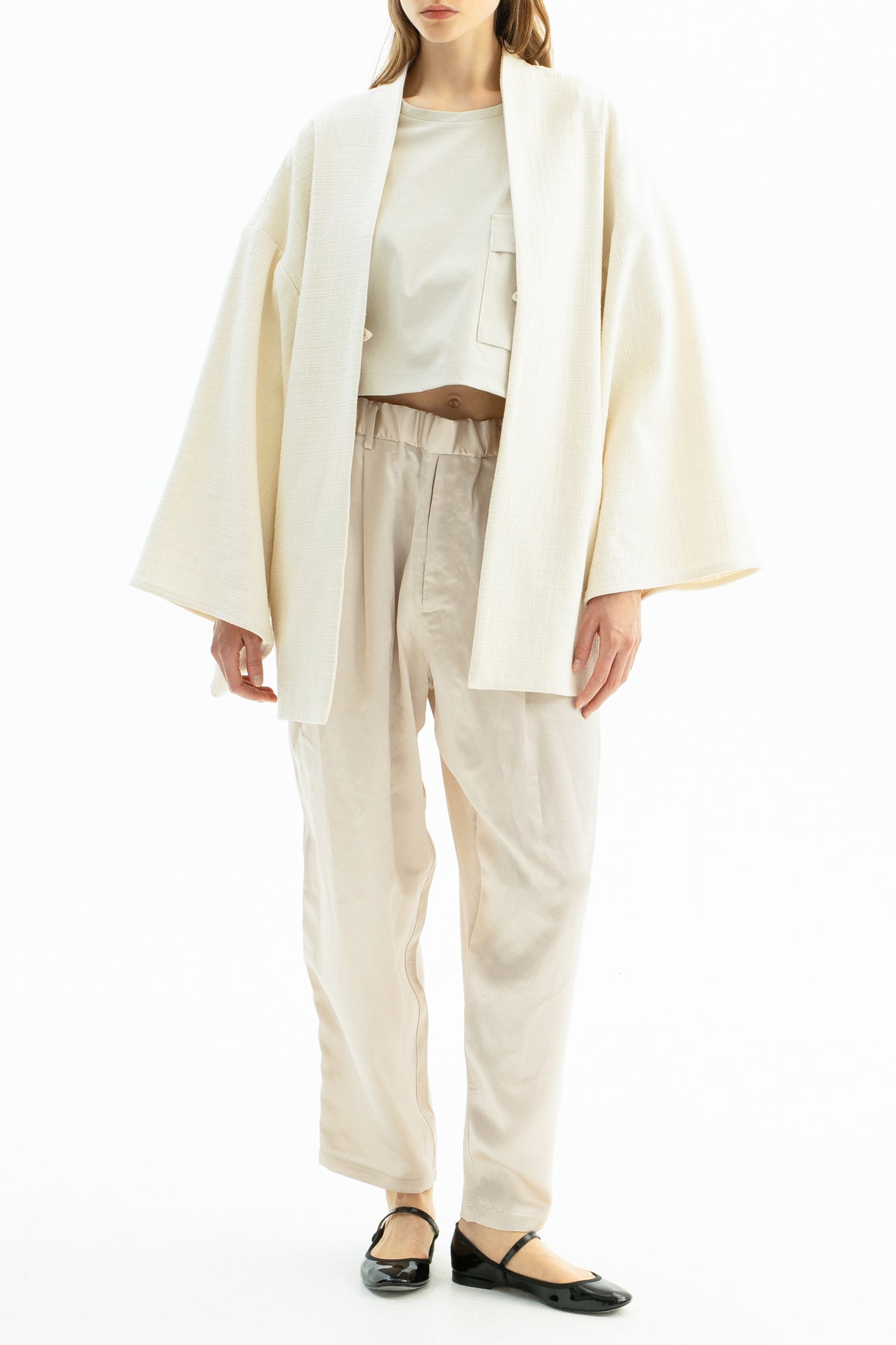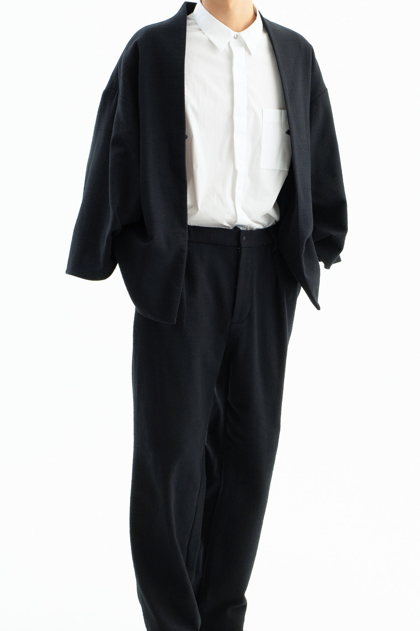 和装の羽織に着想を得て、現代生活に寄り添う素材とディティールで再構築。