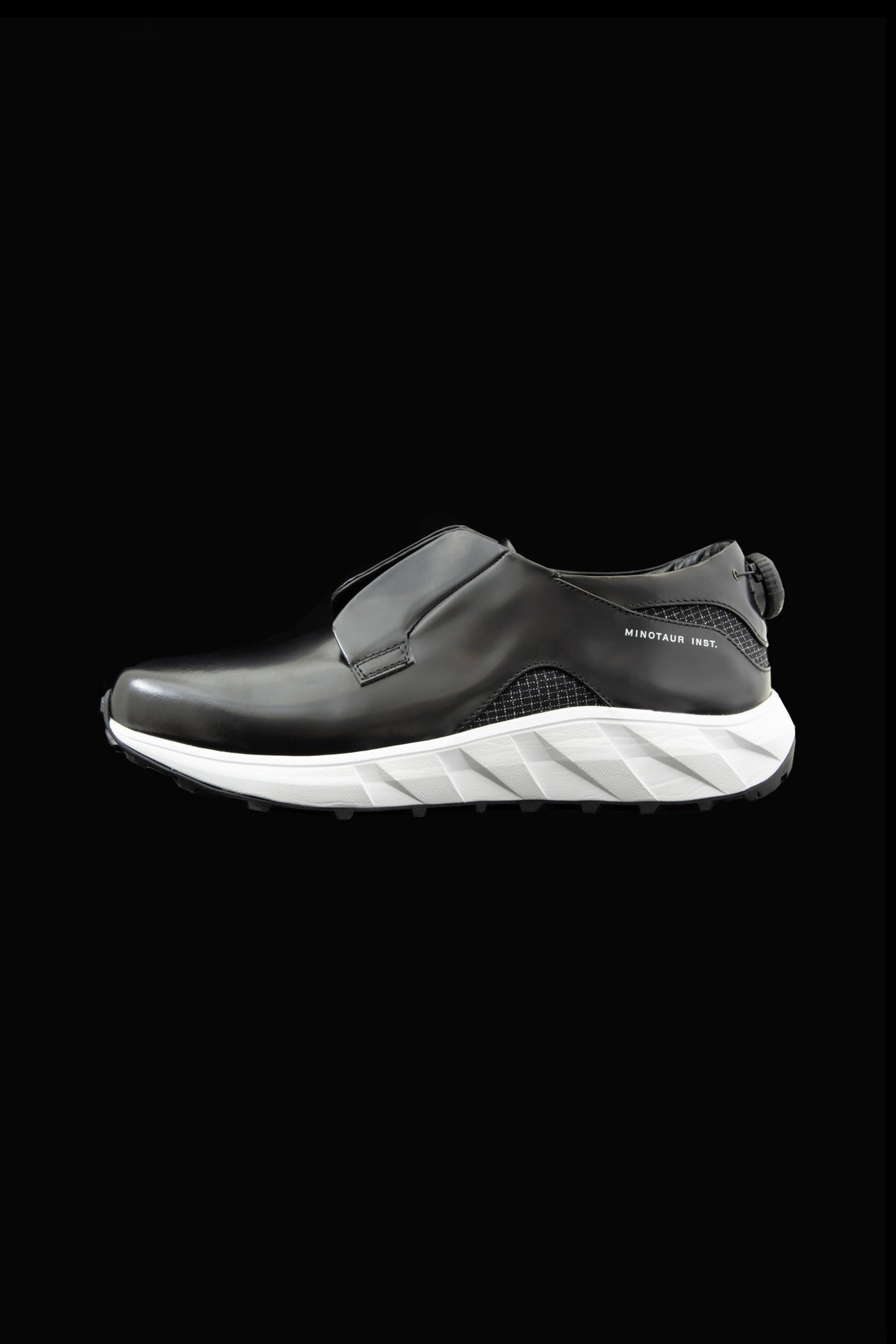 透湿性に優れたタフなテック素材との切り替えにより、くるぶしに触れるレザーが優しくフィットし、歩行時の衝撃をしなやかに受け止める。
