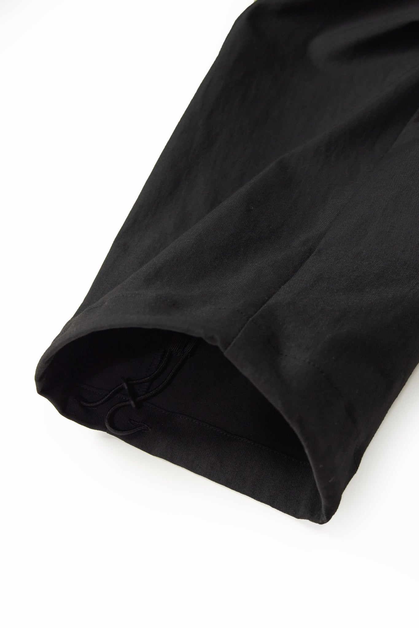 裾はドローコードの調節により、スタイリングに合わせたアレンジが可能。